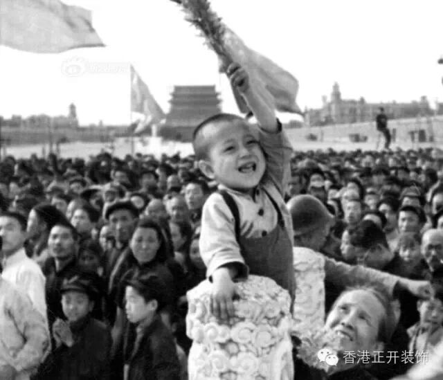 毛泽东在天安门城楼向世界宣告了中华人们共和国的成立,当天,30玩军民聚集在天安门广场,他们中不少人举着红旗、灯笼,见证并欢庆共和国的成立。