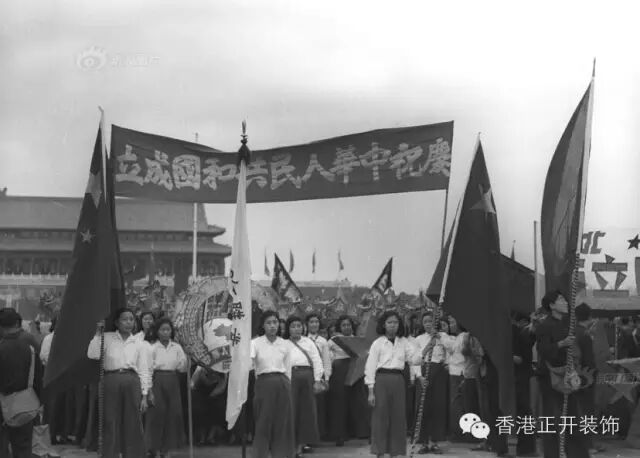从1949年——1959年,没一点的“十一”都在天安门的广场举办了阅兵式。此外,大量的普通民众也参与到游行队伍中,据统计,约有40万军民参加到了1950年的国庆一周年庆典。