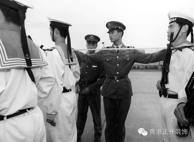 1999年,国庆50周年大阅兵盛况空前,这也是自1984年阅兵式以来的首次大阅兵。各方阵的整齐划一令人震撼,这背后是中国军人付出的常人难以想像的汗水和泪水。图为1999年9月,位于北京沙河机场的阅兵村,一名教官正为水兵方队的两个士兵测度间距。